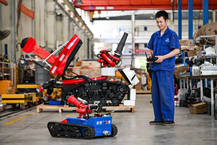 南岸区的重庆迪马工业有限责任公司生产车间,工作人员在调试消防机器人产品。新华每日电讯记者王全超摄重庆市经济信息委主任王志杰表示,如今的重庆,已形成涵盖AI研发、算法设计、硬件制造、系统集成、应用服务的全产业链生态。