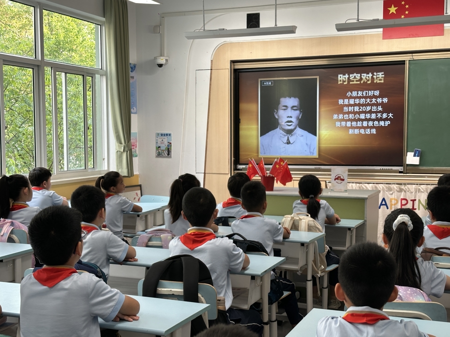 一则则精心挑选的史料,一点一点帮助小学生加深理解。中国人民抗日战争纪念馆“抗战家书视听空间”中,通过AI复原技术,赵一曼烈士念诵着写给儿子宁儿的遗书,听者无不动容。周孙鑫将视频引入课堂,也启发孩子们思考——全文没有一句“妈妈爱你”,那是因为烈士将舍生取义的决绝、为国捐躯的壮烈、义无反顾的刚勇,熔铸成了最深厚的母爱。